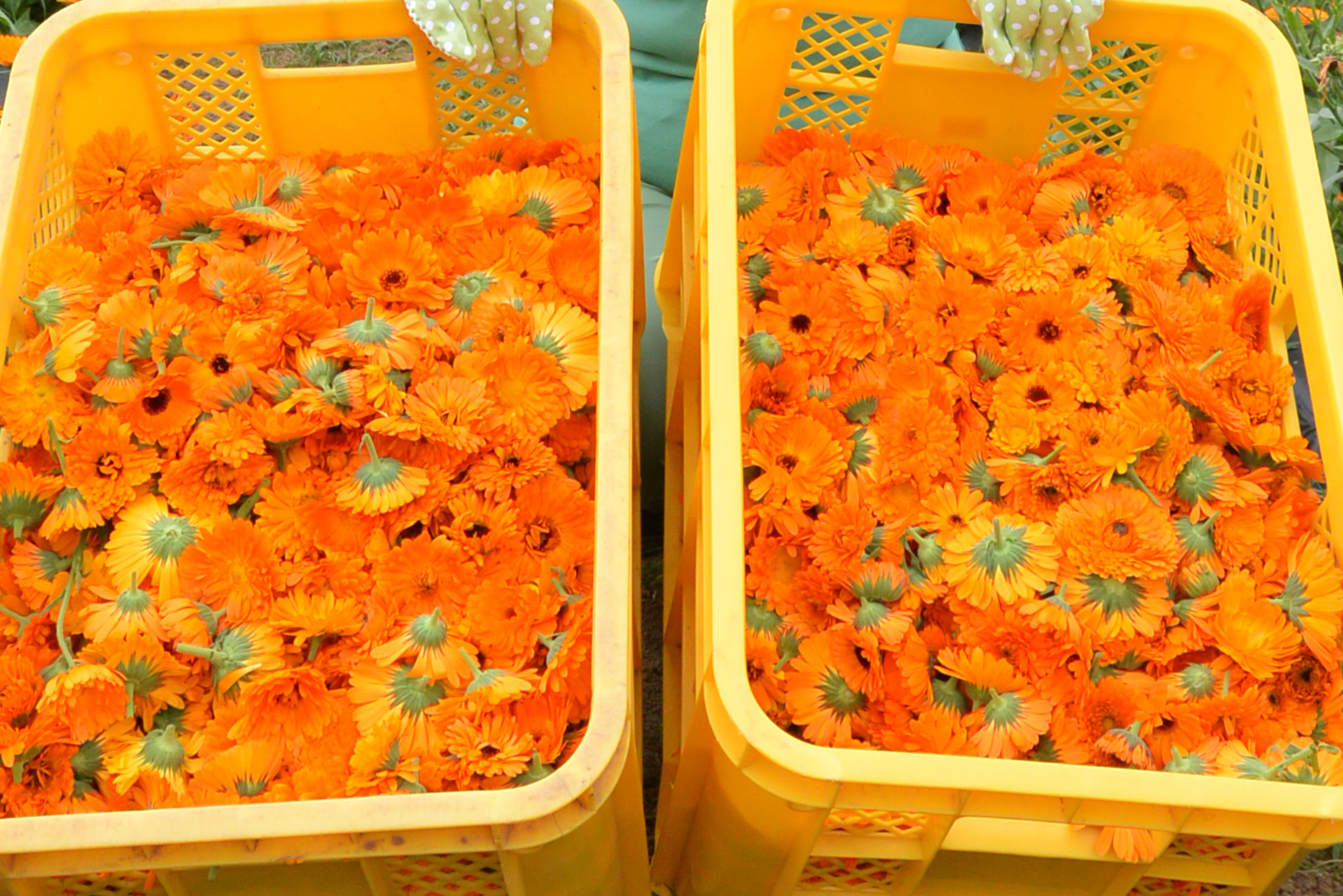 ▲収穫したカレンデュラ