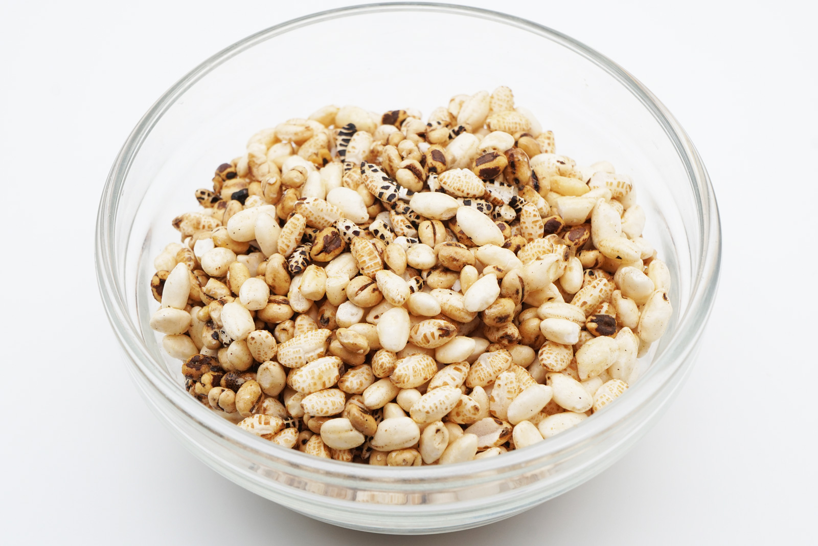 豊受自然農場で、代々種をつなぎ、農薬・化学肥料を使わずに育てた5種類の穀物(六分づき米、黒米、大麦玄麦、小麦、玄米)を、昔懐かしいポン菓子に仕上げました。