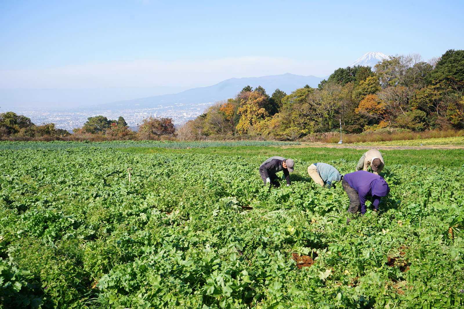 ▲富士山が見守る大根畑