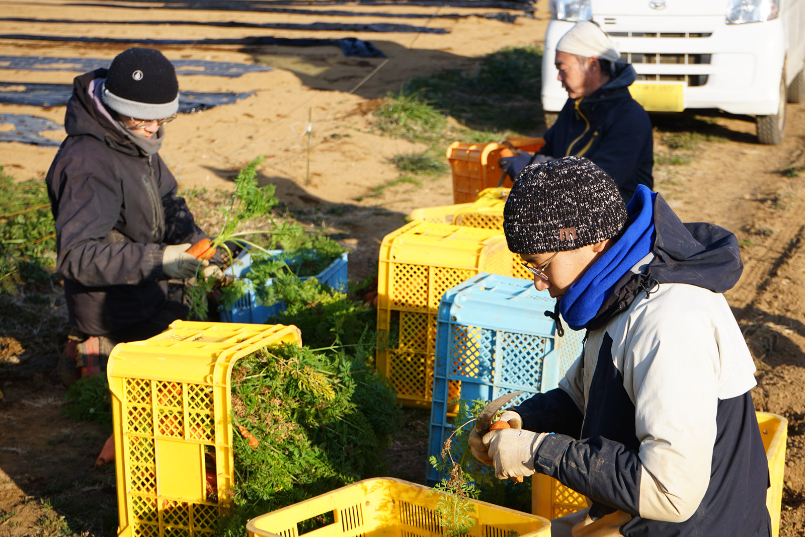 ▲人参の葉っぱ取り